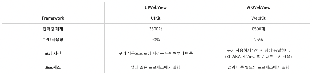 iOS 8 ์๋ ๋ฒ์ ์์๋ UIWebView๋ฅผ ์ฌ์ฉํ์ง๋ง, ์ฑ๋ฅ์์ ๋ฌธ์ ๋ก deprecated ๋์๋ค๊ณ ํจ