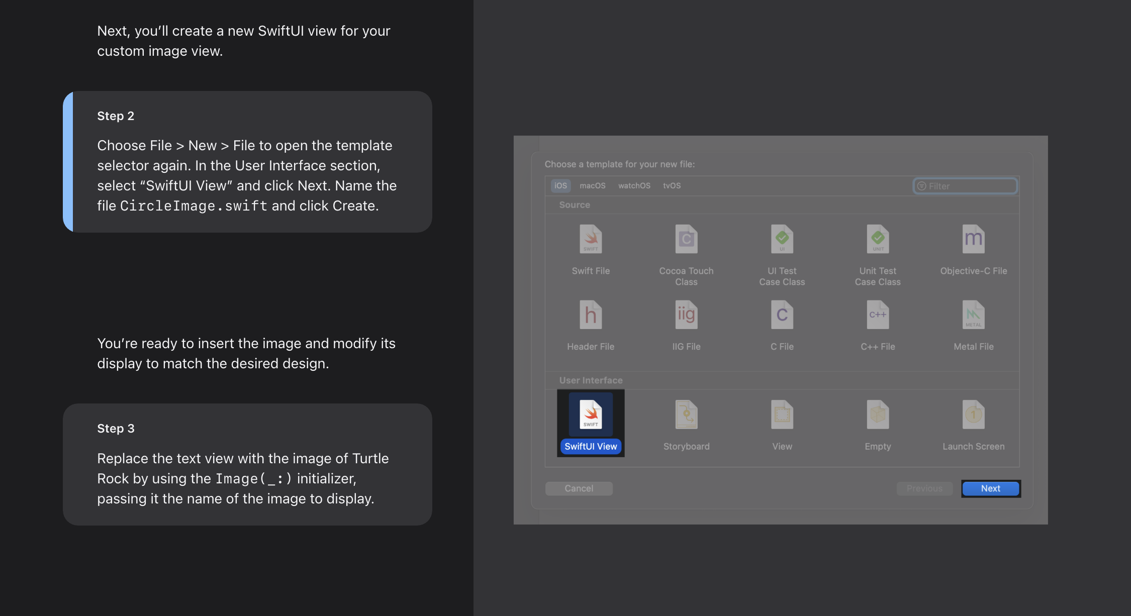 - ๊ทธ๋ฆฌ๊ณ Image(_:) ์ด๋์ ๋ผ์ด์ ธ๋ฅผ ์ฌ์ฉํ์ฌ Turtle Rock ์ด๋ฏธ์ง๋ก ๋ฐ๊พธ์ธ์. ์ง์ง.. ๊ฐ๋จํ๋ค ์ค์ .. ํผ ๋ฏธ์ณค๋ค.