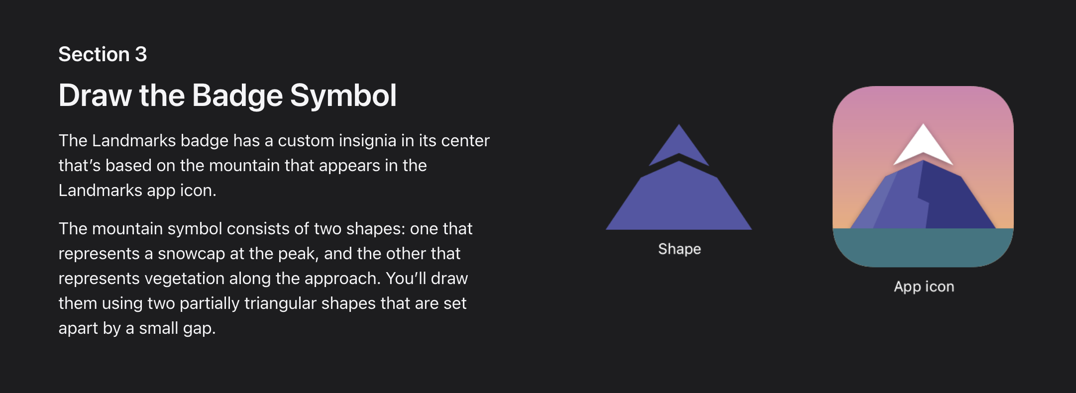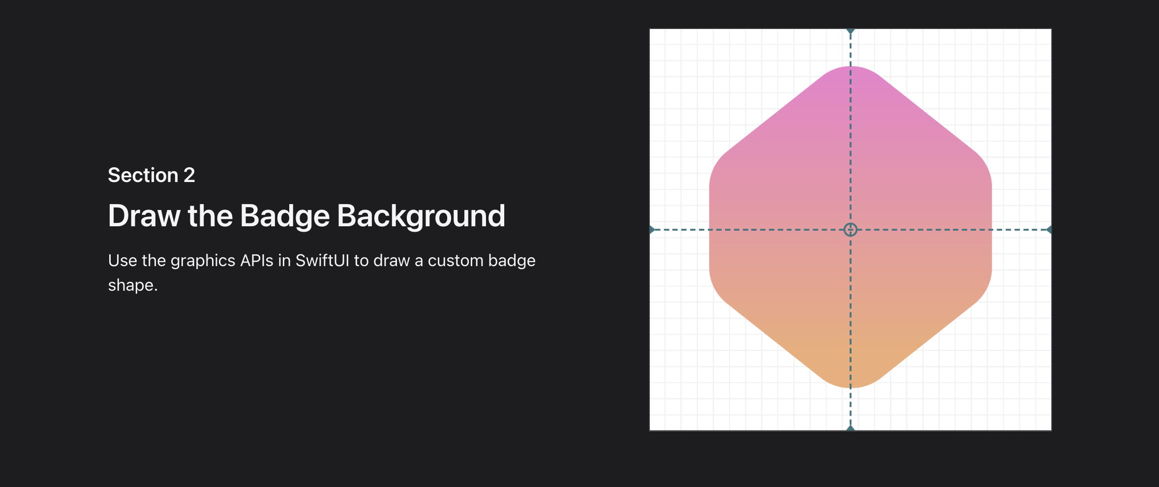 SwiftUI์ ๊ทธ๋ํฝ API๋ฅผ ์ฌ์ฉํ์ฌ ์ปค์คํ ๋ฑ์ง ๋ชจ์์ ๊ทธ๋ฆฝ๋๋ค.