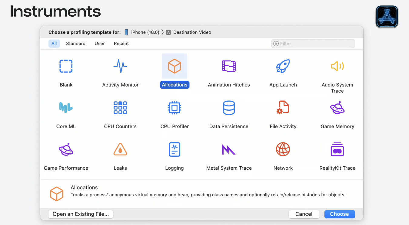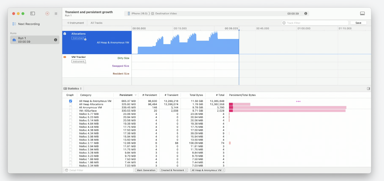 - Instruments์ Xcode๋ฅผ ์ฌ์ฉํ์ฌ ์ผ๋ฐ์ ์ธ ํ ๋ฉ๋ชจ๋ฆฌ ๋ฌธ์ ํ๋จ, ๋ถ์, ํด๊ฒฐ ๋ฐฉ๋ฒ
