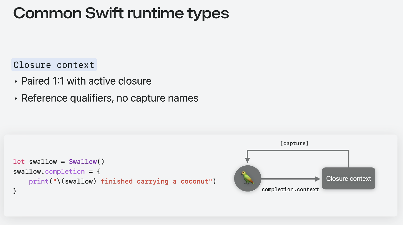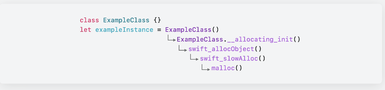 • ๊ฐ์ ์ ์ผ๋ก๋ Swift/Objective-C ์ธ์คํด์ค๋ฅผ ํตํด ํ ๋น๋จ
