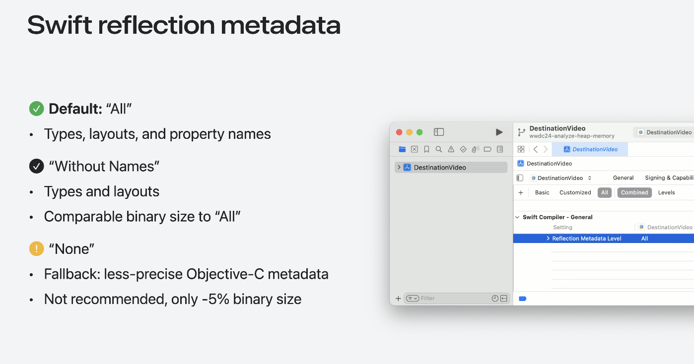• Objective-C๋ objc_direct, objc_externally_retained ๋ฑ์ ํ์ฉ