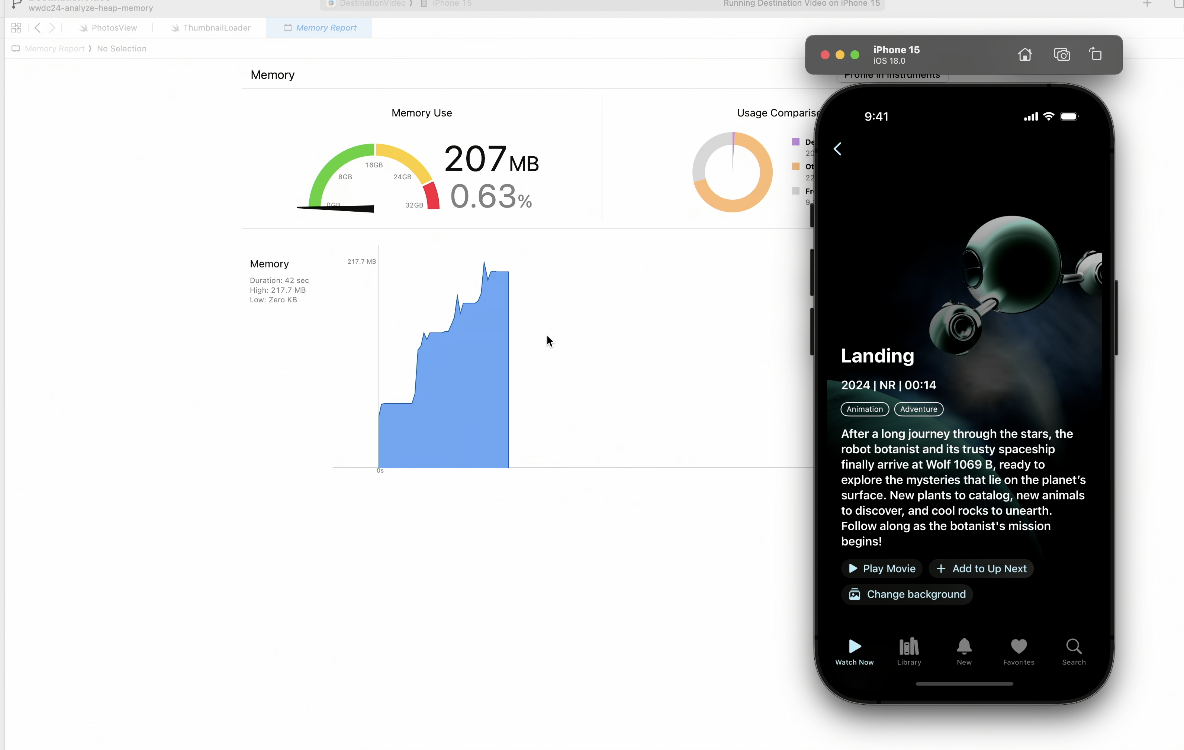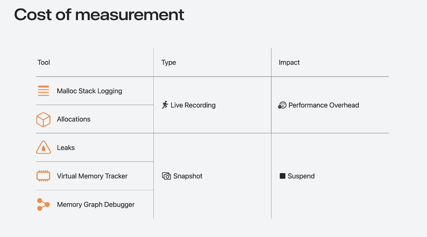• macOS ๋ฐ ์๋ฎฌ๋ ์ดํฐ ํ๋ก์ธ์ค๋ฅผ ์ง์ ๋ถ์ํ๊ฑฐ๋ ์ด๋ฏธ ์บก์ฒ๋ ๋ฉ๋ชจ๋ฆฌ ๊ทธ๋ํ๋ก ๋ฌธ์ ๋ฅผ ์กฐ์ฌํ ์ ์์.