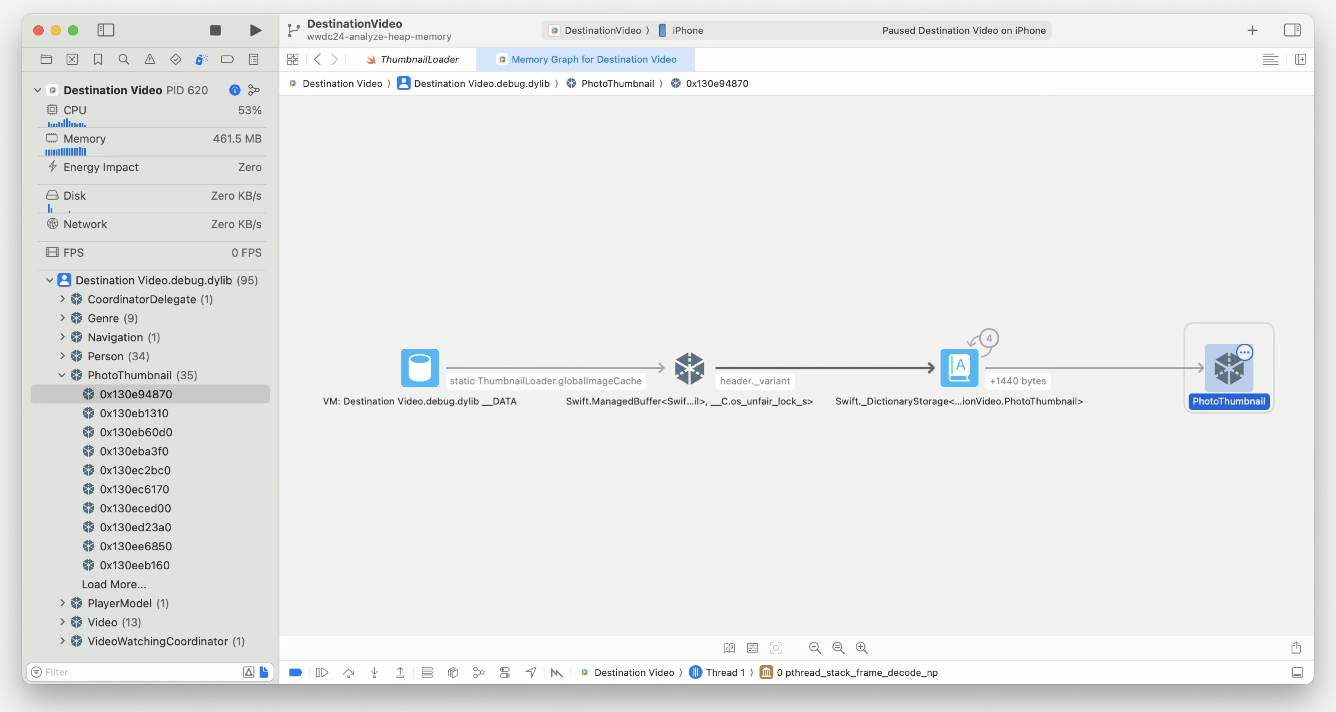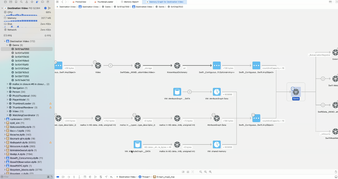 2. Xcode ๋ฉ๋ชจ๋ฆฌ ๊ทธ๋ํ ๋๋ฒ๊ฑฐ