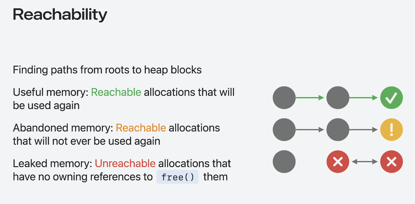 3. Leaked ๋๋ฌ ๋ถ๊ฐ๋ฅํ ๋ฉ๋ชจ๋ฆฌ: ์ฐธ์กฐ ์ฌ๋ผ์ง → ๋์ , ์ฌ์ฌ์ฉ ์ ๋ ๋ถ๊ฐ๋ฅ