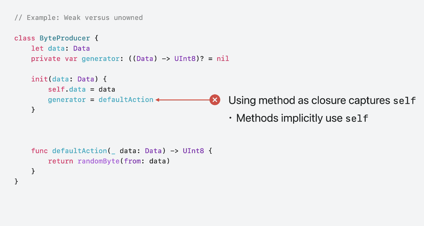 generator = defaultAction // Implicitly uses `self`