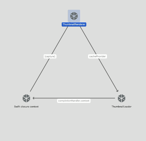 self.thumbnails = renderer.images // implicit strong capture of renderer causes strong reference cycle