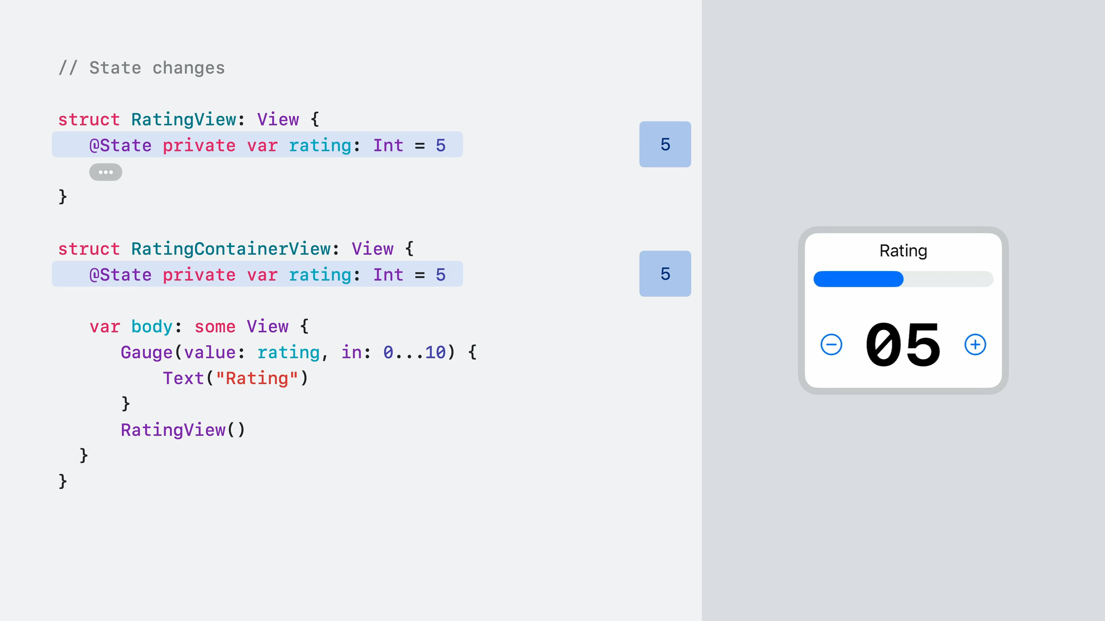 @State private var rating: Int = 5 // <- ์ํ์ ์๋ณธ